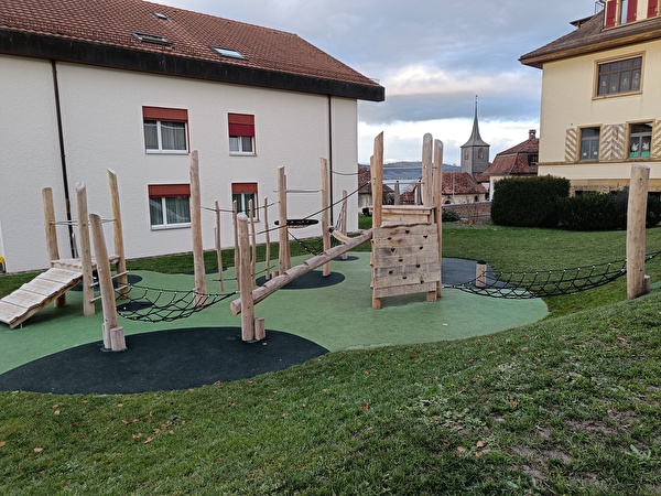 Pour garantir des conditions de jeu optimales, les anciens équipements ont été remplacés par de nouveaux modules en bois d’acacia, un matériau naturellement très résistant et parfaitement adapté à un usage extérieur. Ces nouveaux jeux d’équilibre sont spécialement conçus pour les enfants de 1P à 4P, favorisant la coordination, la motricité et le plaisir de bouger.
